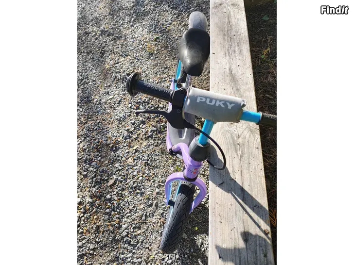 Säljes Puky sparkcykel med luftdäck och handbroms.