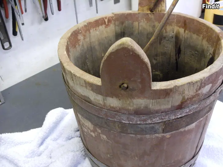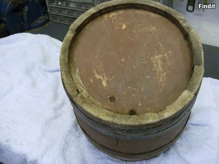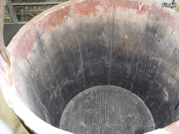Gammalt ämbar av trä . Stabilt. Höjd 35 cm, diameter 30 cm