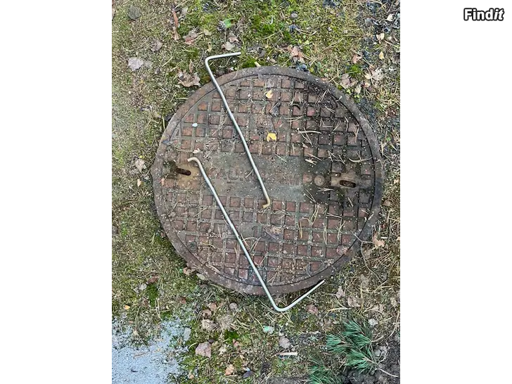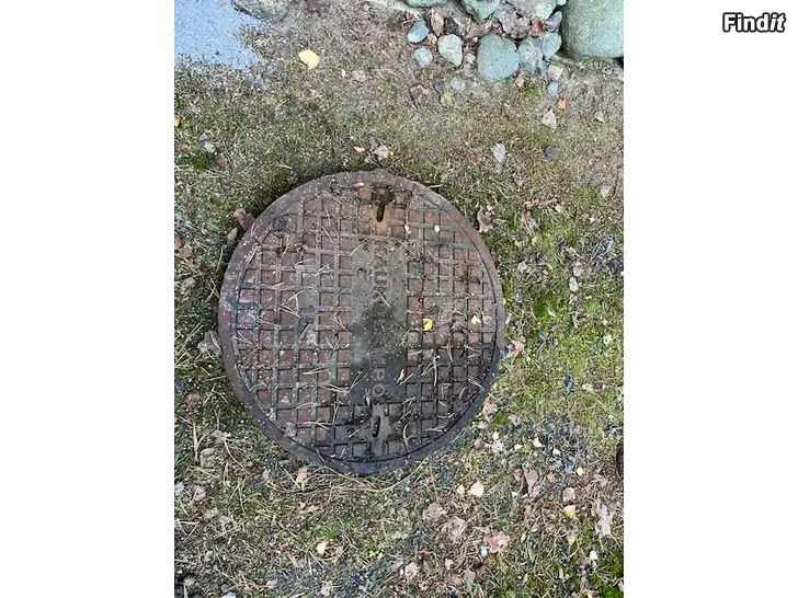 Säljes: brunnslock och ram i gjutjärn, diameter 64 cm.