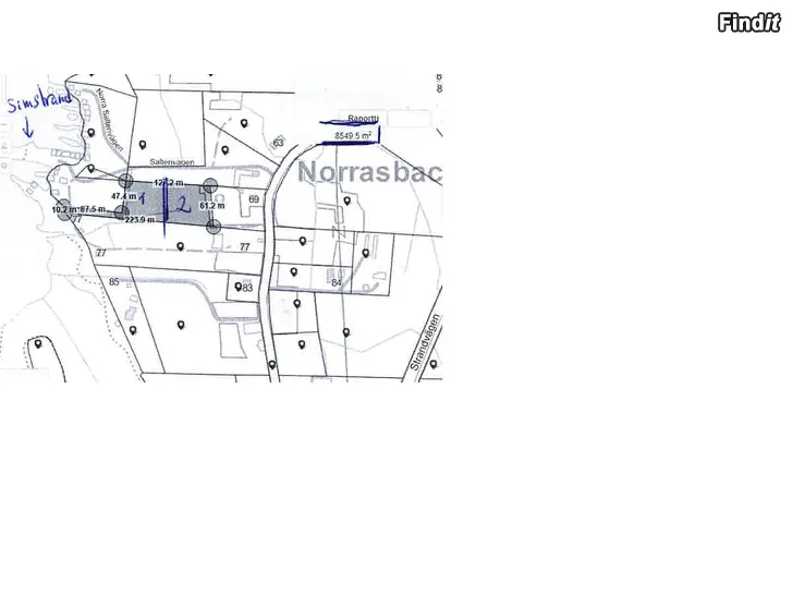Fin tomt med väg, 50 minuters bilfärd från Vasa. Areal 5000 m2. Byggrätt 250 m2. EL o kommunalt vatten vid tomtgränsen. Liten egen strand, ca 10 m. Nära allmän strand med bastu o hopptorn. Adress Salterivägen, Harrström.