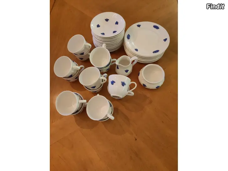 Säljes Blå blom kaffeservice Gustavsberg, 14 st kaffekoppar, 14 st kaffefat, 9 st assietter, 1 st gräddkanna, 1 st sockerskål.