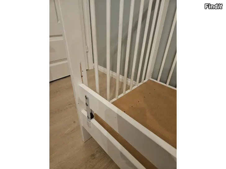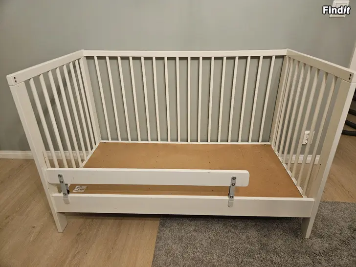 Säljes en Ikea Gulliver spjälsäng i gott skick, men spår av användning finns. Botten är höj och sänkbar och ena sidan kan tas bort och istället en sidobräda användas se bilder. Mera info om sängen hittas här: https://www.ikea.com/fi/fi/p/gulliver-pinnasaenky-valkoinen-10248519/