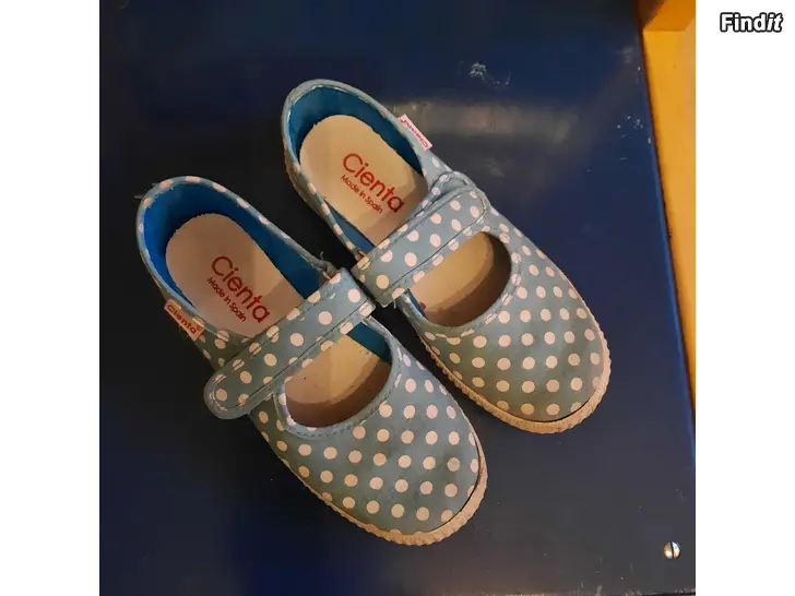 Säljes också ett par prickiga sandaler, turkosa, storlek 31