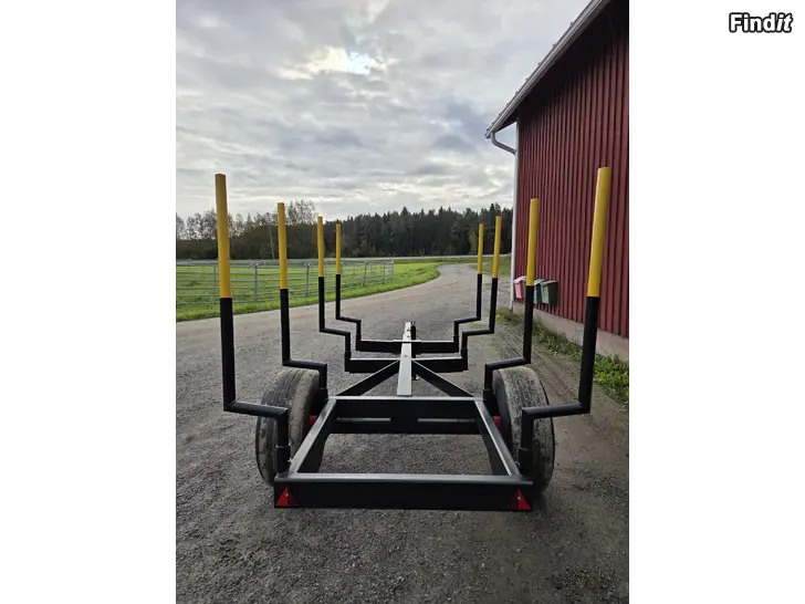 Säljes en skogskärra i bra skick med nya hjullager. Perfekt till mindre traktor. Löstagbara stolpar!