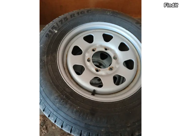 Säljes vinterdäck på fälg 215/75/16 C Nissan pick up fälgar.plåtfälgarna blästrade och målade. Medkörda 1 vinter.