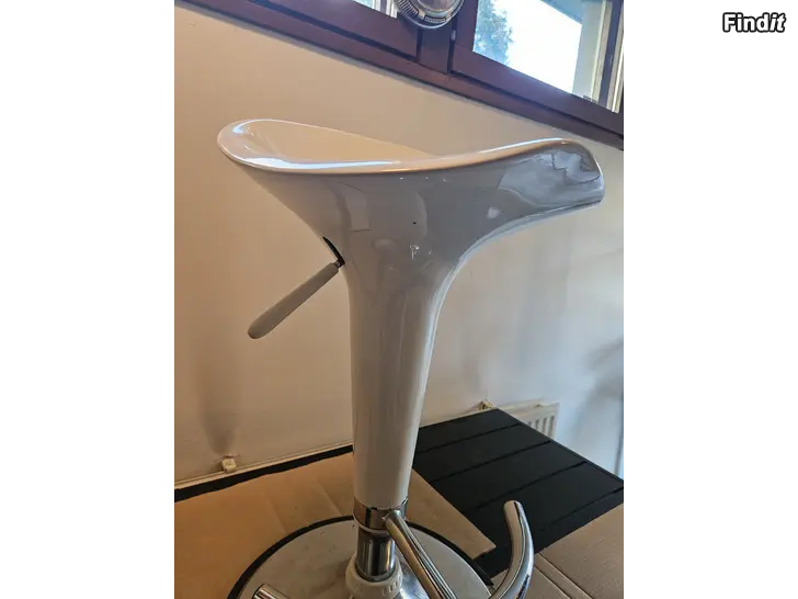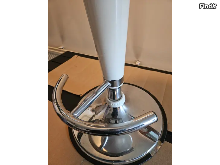 Retro, modernt retro eller gammaldags modern? Välj själv. Fin stol. Höjdjusteringen fungerar. Den här kan man sitta på, och till och med snurra. Små ytliga skavanker, men den är i riktigt fint skick.