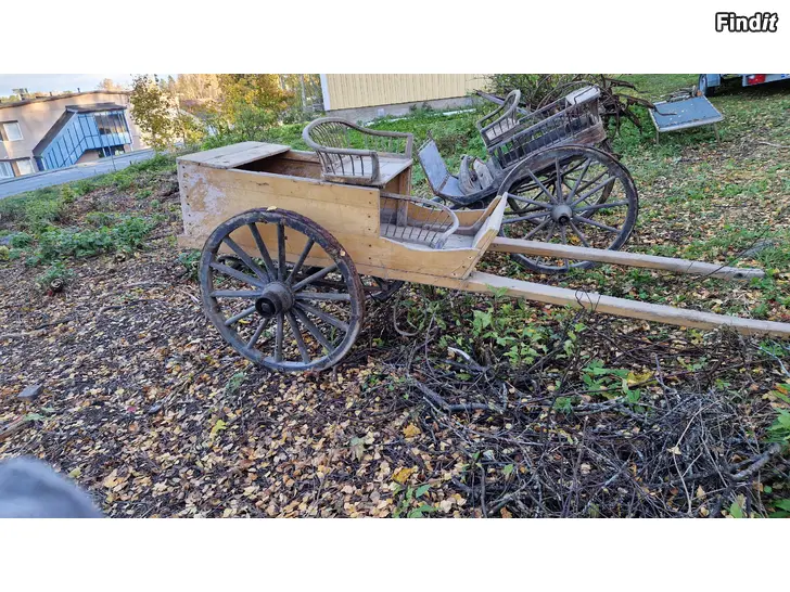 Säljes ett par äldre hästkärror, bägge har varit förvarade under tak en längre tid, troligen använda senast på 50-talet.