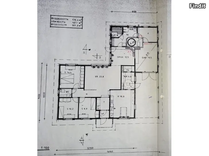 Huset är byggt 1988 av Simons Elementhus och har en vacker Mexi-tegelfasad. Bostaden omfattar fem rum och kök med tre sovrum, bastu, hjälpkök, teknikrum, förråd och garage. Bostadsytan är 138 m² och den totala våningsytan 167 m².