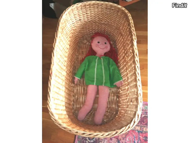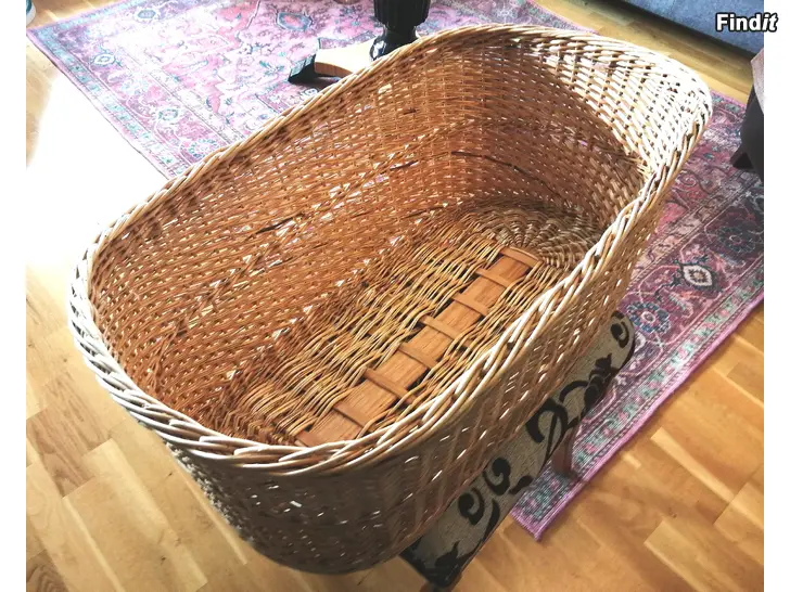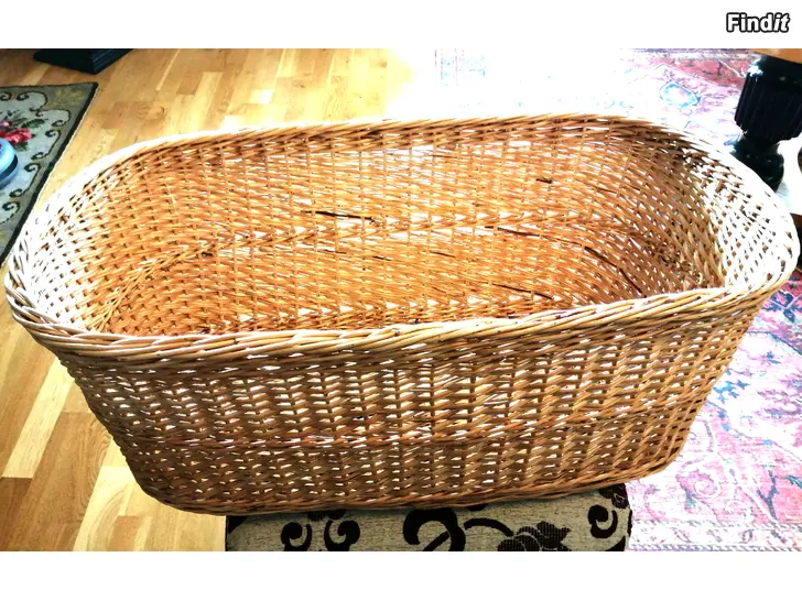 Stabil gammal korg i gott skick. Tillverkad i flätad pil. Lämplig t.ex som babyns första säng.