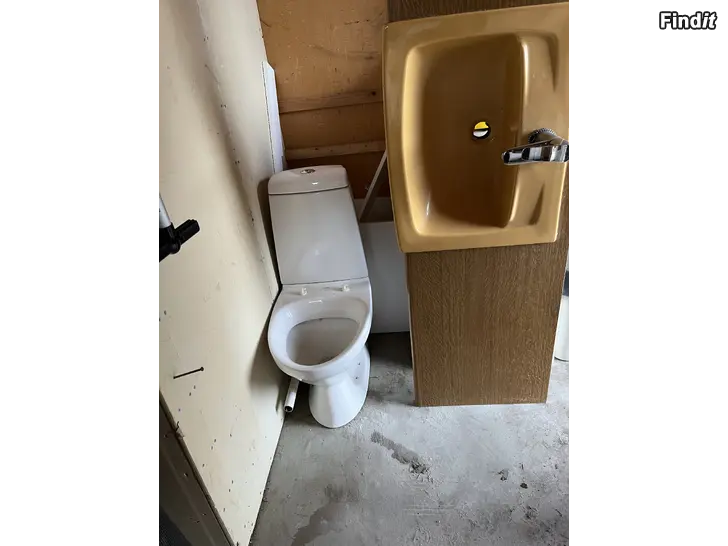 Säljer hela inredningen till wc, undre mått 50x155cm vattenkran och tvättfat medföljer. Övre skåp med spegel 130cm Wc stol Ago inget lock
