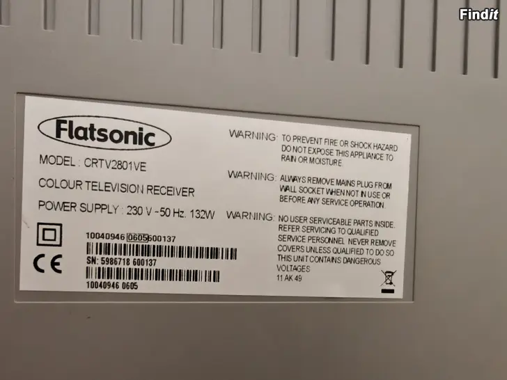 Gammal widescreen tv bortges så fort som möjligt, åker snart på stormossen pga utrymmesbrist. Vet ej hur bra den fungerar men ca.15 år sen var den i dagligt bruk. Fjärrkontroll finns.
