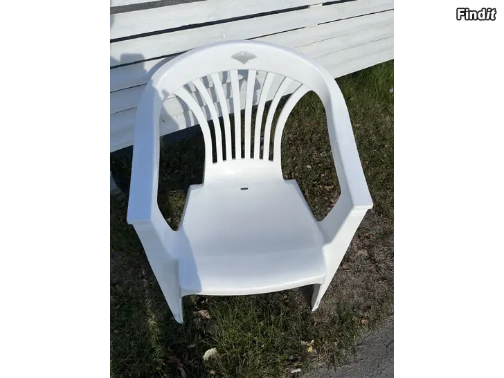 Vi har fyra vita plaststolar överlopps , stått inne i förråd så gott som alla somrar.