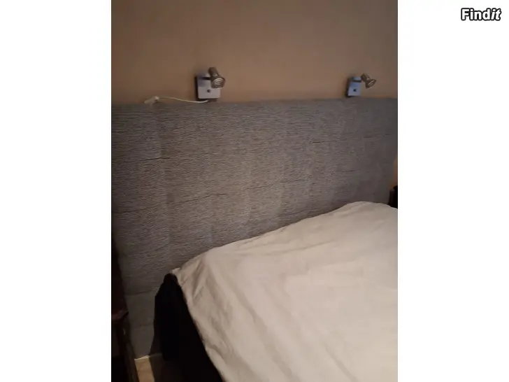 90 cm bred säng med tillhörande gavel säljes som obehövlig. Sängen behöver ny madrass. Lamporna ingår ej.