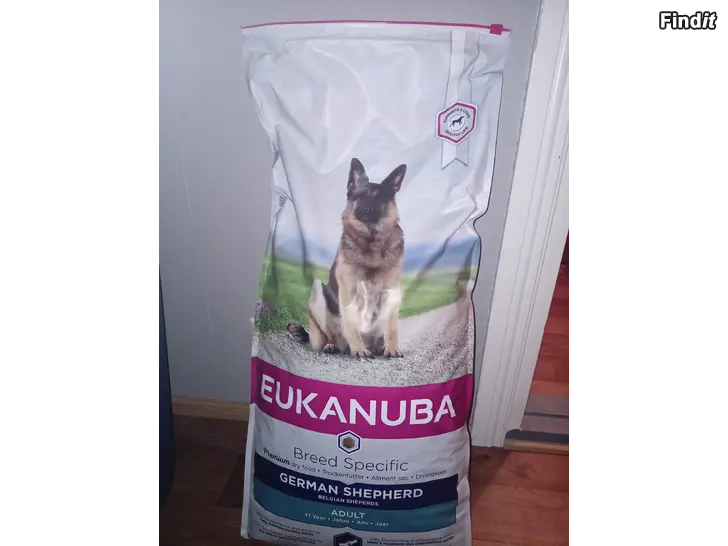 Två oöppnade Eukanuba German Shepherd vuxen påsar säljes. Finns i Kvevlax.