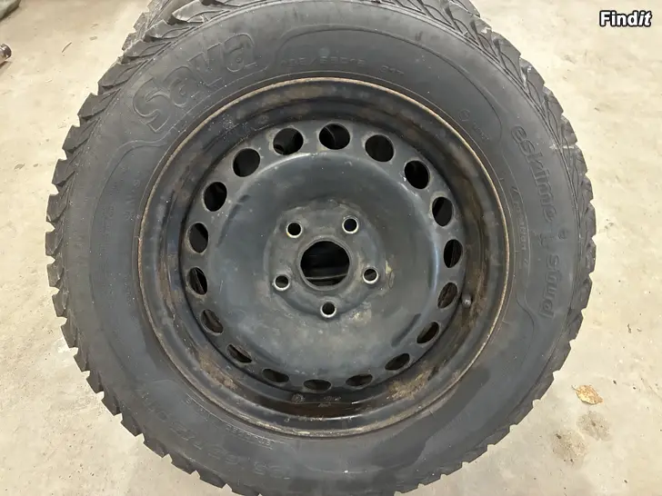 Vinterdäck på plåtfälg med orginal navkapslar. Sava 195/65 R15. 3422 bakade. En vinter 3t körda. Säljes pga bilbyte. Alla dubbar kvar och riktigt bra mönster.