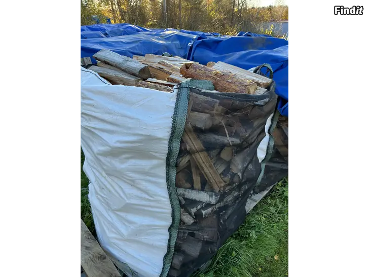 Stor säck bland ved 1,5m2 varav säkert hälften är björk. Längd 50 cm finns 7 säckar = ca 10m/2 kastmått 85€ styck