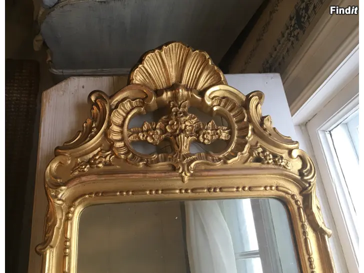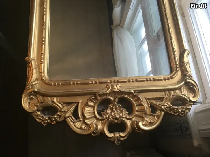Större Rokokospegel, 109*44,5, i helträ, bra proportioner, svensktillverkad, i mycket fint skick, fås till Karleby eller Jakobstad och närregionen eller hämtas från Kronoby.