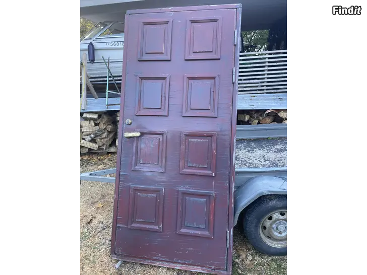Byggdörr med karm 210x100 cm. Dörrhandtag. Ej nyckel. Skavanker finns rejält.