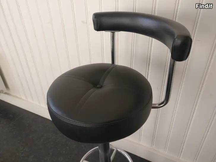Tung och stabil barstol som inte passade där det var tänkt. Sitthöjden är 81 cm och går inte att justera på denna modell. Klädseln är som ny däremot finns små rostangrepp på kromdelarna. Pris 10 euro. Hämtas på flexibel tid från min trappa i Jakobstad.