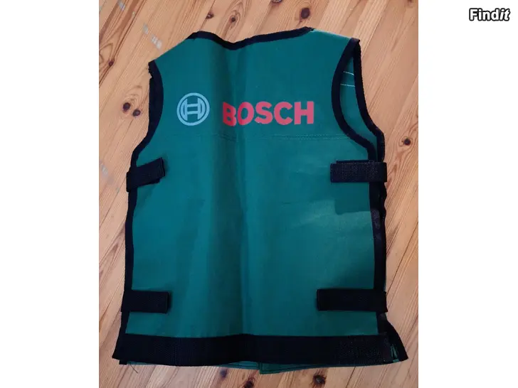 Työkaluliivi pienille timpureille. Liivin taskuihin mahtuu pieniä työkaluja. Liiviä voidaan säätää sivuilta.