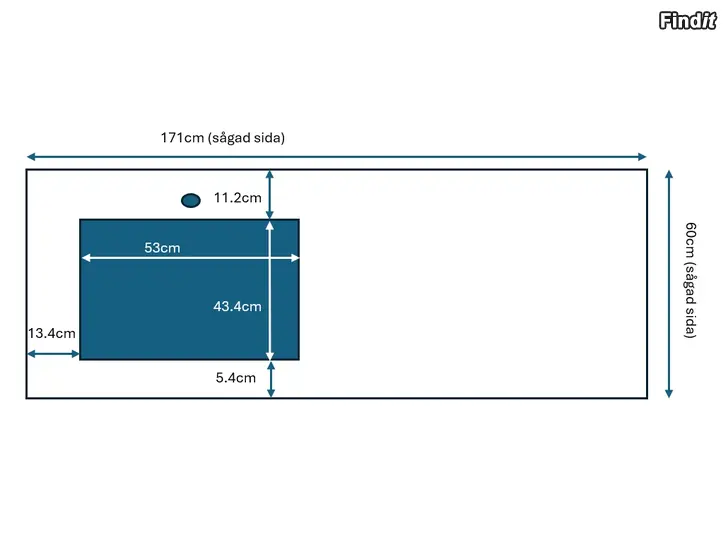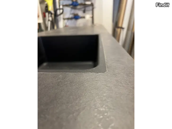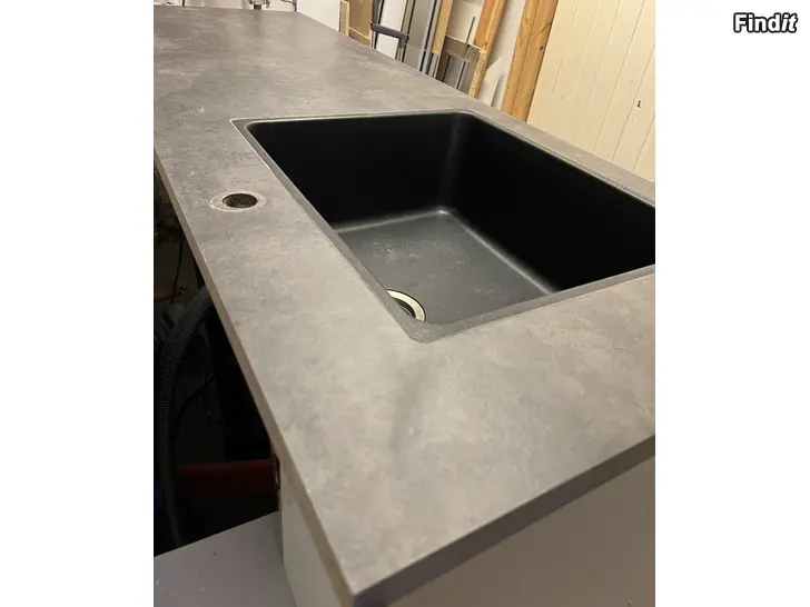 Bänkskiva: Ikea Ekbacken betongmönstrad 171cm x 60cm. 35mm hål för köksblandare.