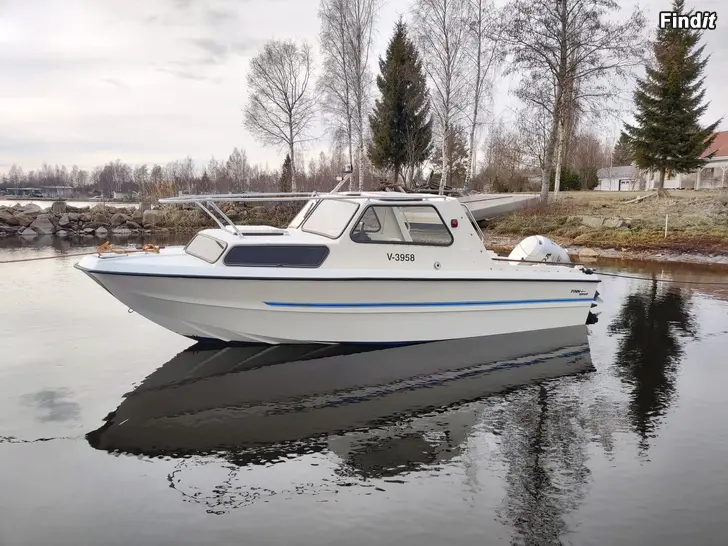 Säljer en båt i okej skick. Den är upptagen nu och står på trailer som ingår. Hjullagren på trailern är i dåligt skick och behöver ses över. Båten har inte blivit tvättad efter upptagningen, så den är smutsig.