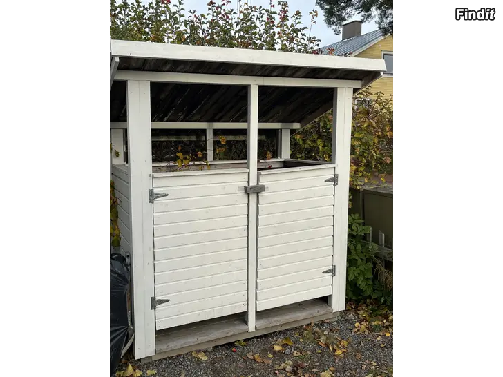 Säljes avfallsskjul som rymmer ~3 sopkärl.