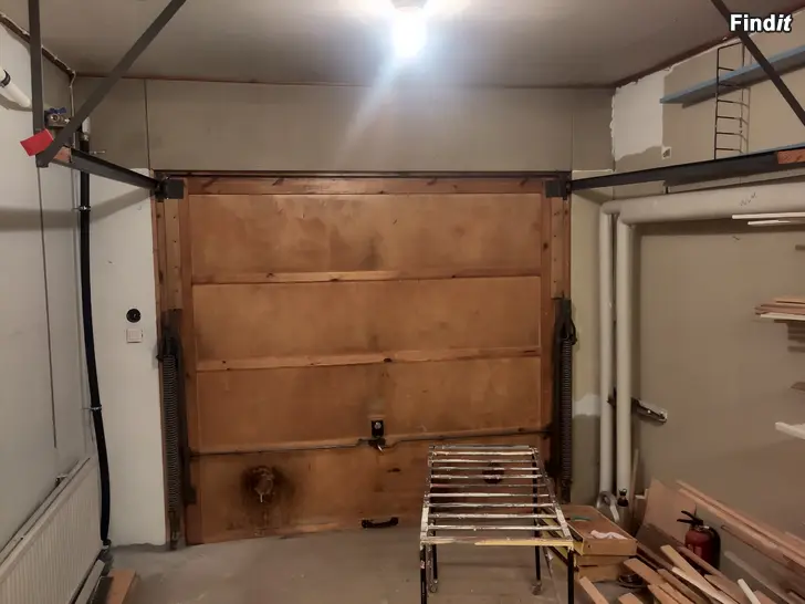 Kippdörr med mekanism. ca. 203cm hög, 221cm bred. Färdigt nerplockad.