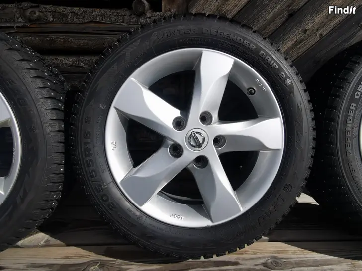Däcken lite körda med bra mönster, självklart alla dubbar kvar, 205/55 R16.