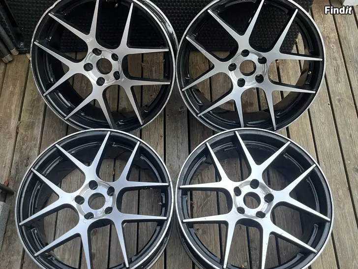 Två av fälgarna är böjda men annars i OK skick. Fälgarna har varit på bilen på sista bilderna. Alla bud är välkomna!