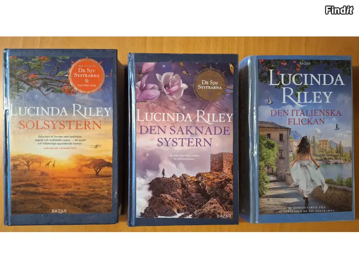 3 inbundna böcker av succeförfattaren Lucinda Riley. 2 stycken i serien Systrarna och Den italienska flickan, utgiven 2023. Säljes helst som paket: 25 euro, annars styckepris 12 € / styck.
