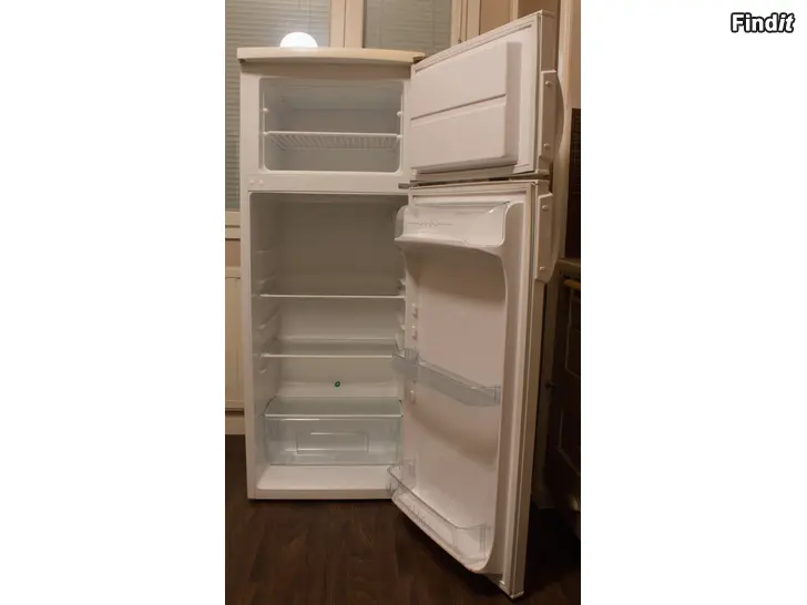 Fungerande kylskåp med frys bortges. Frysfacket hade några små sprickor som reparerats med epoxy filler. Helt i skick. Mått: Höjd 140cm, Bredd 55cm, Djup 58cm + radiatorn på baksidan 4cm.