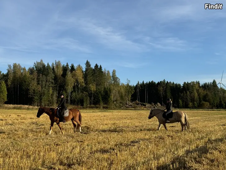 På kursen lär ni er att ta hand om hästen, ställa den för ridtur och grunderna i ridning. Fokus ligger varken på dressyr eller hoppning utan att ni ska lära er att rida ut på hästarna och njuta av härliga terrängturer🥰