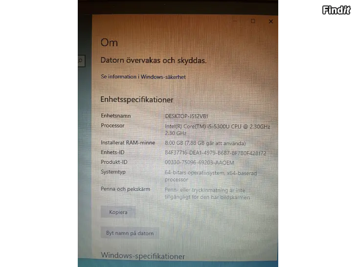 Processor: Intel Core i5-5300U, 2.30 GHz