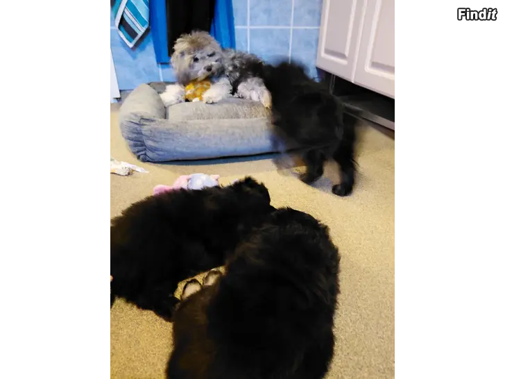Mamman är allergivänlig, med lockig päls som behöver trimmas. Pappan är en liten, svart och lurvig hund.