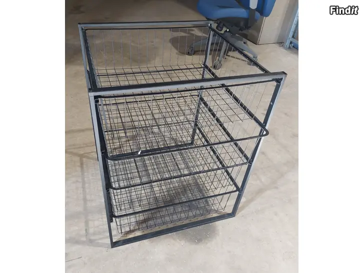 Trådkorgsställning, svart med fyra korgar. H70, B55, D53. Hämtas alt. kan levereras i Vasas närområde.