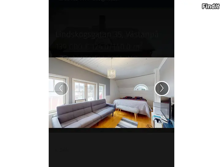 1929 byggt eh-hus omfattande kök, stort vardagsrum kombinerat med matsal, wc samt bastu/badrum + 2 sovrum och wc/badrum på övre våningen, totalt ca 140 m2. Köket utrustat med diskmaskin och kylskåp. Separat uthusbyggnad ca 45 m2 som inhyser garage samt förråd/hobbyrum. Tomt på ca 470 m2 ingärdad med staket samt planteringar som ger insynsskydd. Vattenburen golvvärme. Uppvärmningssystem olja.