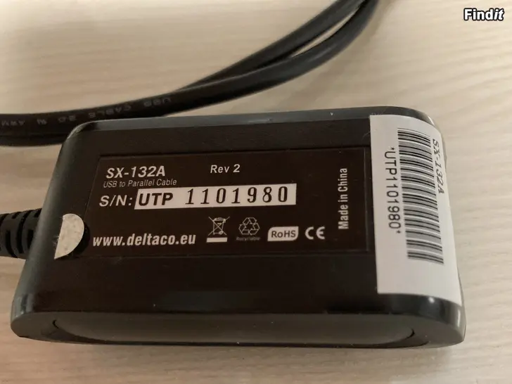 Liitin: 1 x USB 1.1 Type-A uros, 1 x rinnakkais SUB-D 25-pin naaras. Löytyy Vaasasta. Voin postittaa kuluja vastaan.
