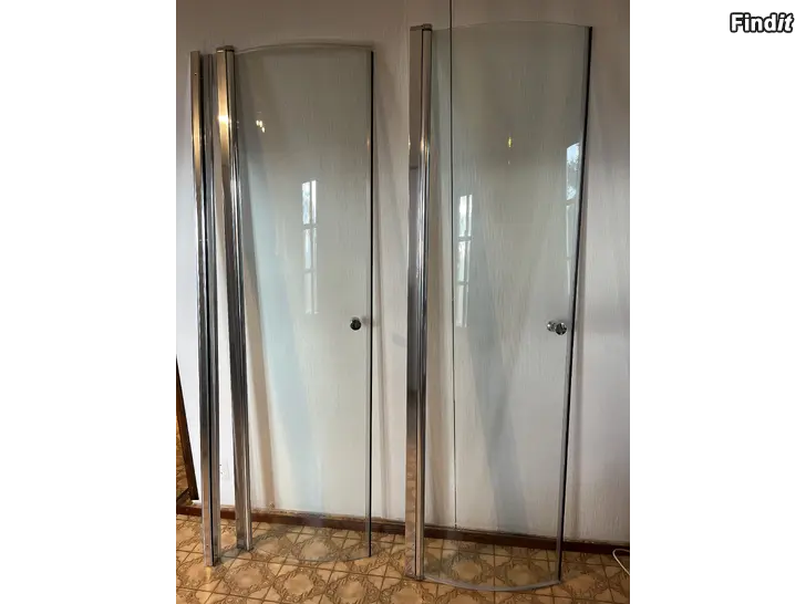 Nya duschdörrar för duschhörna på 70*70 cm själva dörrarnas välvda bredd är 57 cm. Höjd 190 cm. Finns att hämtas i Yttermark.