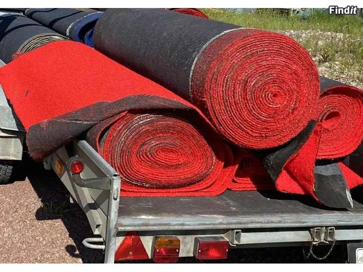 Konstgräs, obetydligt använt ett år på inomhusgolv. Konstgräset är kort krullgräs och passar i ex lobby, gångar, uppvärmningsytor eller varför inte som hundträningsmatta? Färg: klar röd. Totala ytan är minst 243 m2. Rullarna är ca 2,30 breda. Köp bort hela mattan för 1500 e! Eller bud! Upprullad och klar att hämtas eller boka transport! Åland