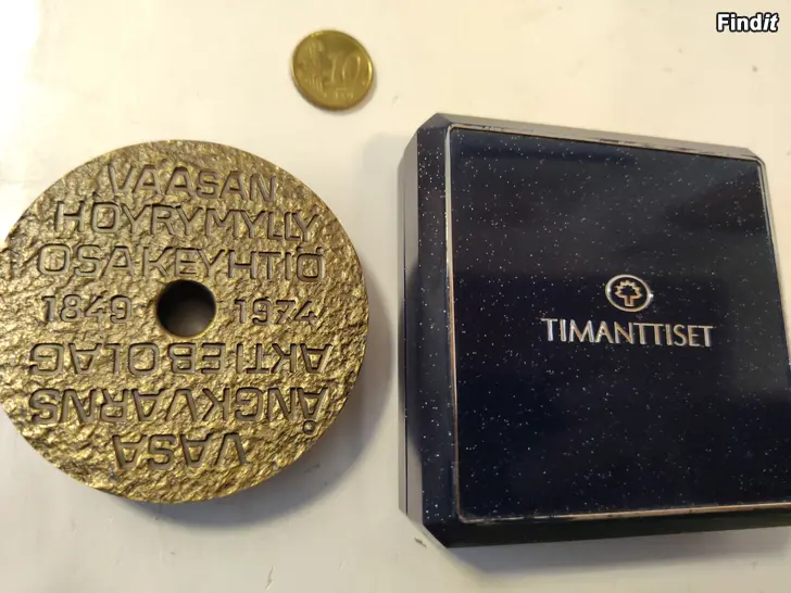 Heikki Häiväojan suunnittelema iso lähes 0,5 kg painava pronssinen pöytämitali VAASAN HÖYRYMYLLY OSAKEYHTIÖ 1849-1974 VASA ÅNGKVARNS AKTIEBOLAG