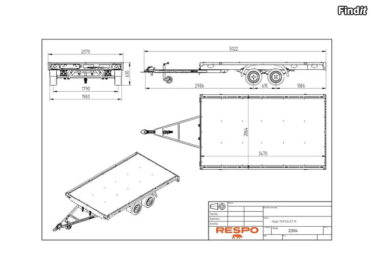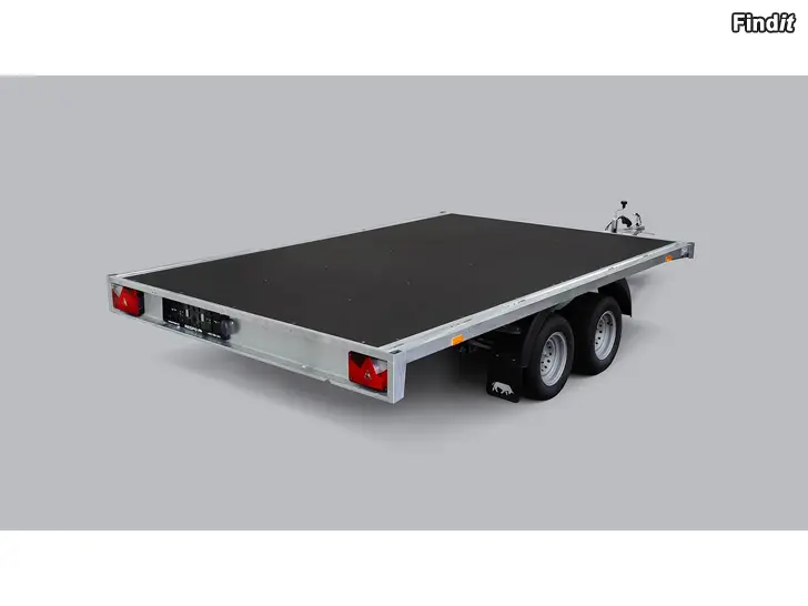 Högkvalitativ maskinsläpvagn för mångsidig användning. Släpvagnen har en svetsad, varmförzinkad stålram. Ytbeläggningen på den väderbeständiga bottenfaneren är UV-beständig och förhindrar att lasten glider. Vår släpvagn kännetecknas av hög kvalitet och användarvänlighet.