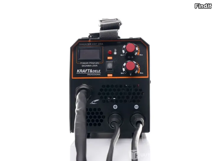 KRAFT&DELE Professional kombinationssvetsmaskin med en effekt på 200A. Den har mångsidiga användningsområden och används bland annat för svetsning av rostfritt stål, legerat stål, kolstål och andra metaller. Utrustad med: LCD-display, smidig justeringspotentiometer och svetskablar med snabbkopplingar. Den stora, lättlästa displayen gör att du kan ställa in rätt svetsström exakt. Smidig justering av svetsströmmen i intervallet 40 - 200 A gör att även nybörjare kan utföra optimalt svetsarbete. Möjlighet att använda elektroder från 1,6 till 4 mm. Utrustad med termostat och fläkt. SPECIFIKATIONER: Inspänning: 220V Frekvens: 50/60Hz Nominell intäkt aktuell 30A Ingångsström: MIG: 40-200A MMA: 20-200A Nominell svetscykel: 80  Trådhastighet: 2-13m/min. Invertertekniken som tillåter långa kablar gör den idealisk för bland annat byggplatser och maskinservice på fält. Priset inklusive moms 25,5 . Betalning med kort, kontant eller faktura.