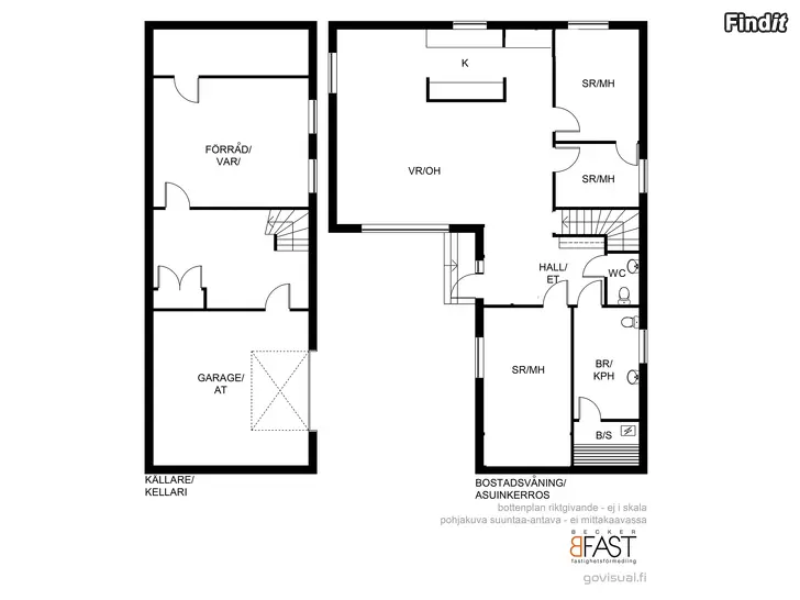 Bostadshuset är ursprungligen byggt 1969, men totalrenoverades 2025 och standarden motsvarar nybyggnation. Huset omfattar tre sovrum, vardagsrum/kök, badrum/bastu/WC samt separat WC på bostadsvåningen. I källarvåningen finns garage och förrådsutrymmen. Våningsyta på bostadsvåningen ca 125 m² samt källarvåning ca 80 m². Modern utrustning och stilrena ytmaterial.