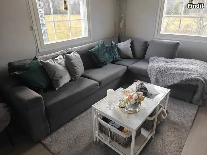 Säljes soffa i gott skick, ca 6 år gammal. Längd 275cm bredd 200cm. Divanen har inte förvaring och kan ej byta sida. Kan avhämtas från och med lördag 1.11 Katthushåll. Egen bärare med.