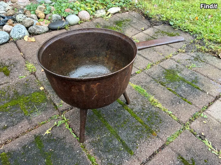 Fin gammal järngryta. Har använts utomhus.