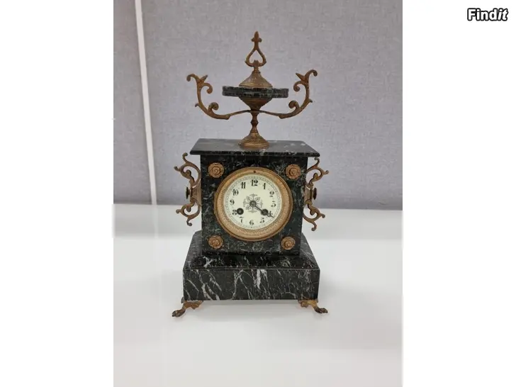 Bordsklocka I sten och mässing från 1800 talet säljes.höjd 40 cm