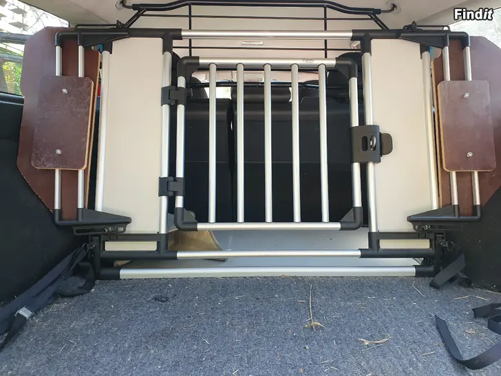 Praktisk hundbur som går att anpassa till flera olika bilar.