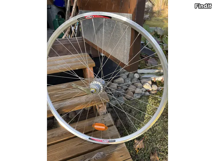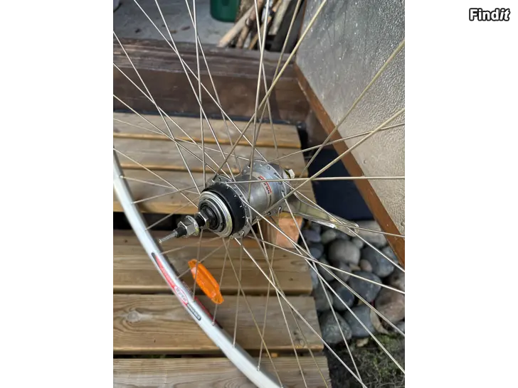 Shimano Nexus Inter 3 cykelnav. Fälgen skev p.g.a påbackning av bil när cykeln var ny, hjulet rullat under 50 km. Varit på en Tunturi damcykel