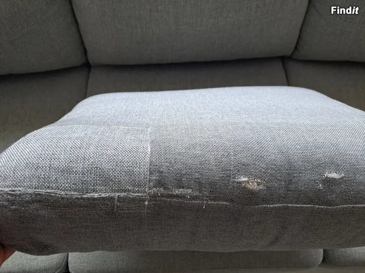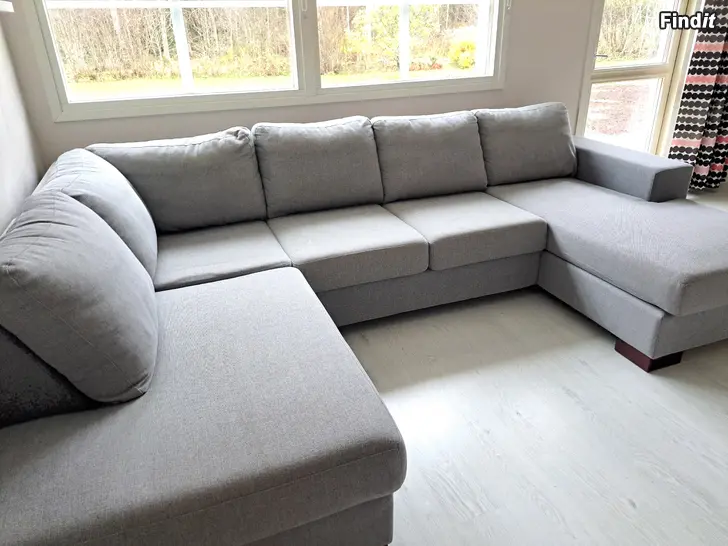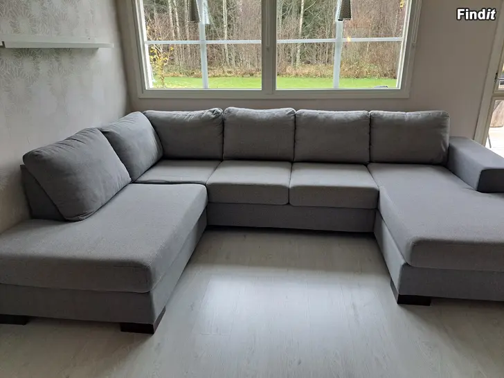 Stor och bekväm soffa säljes. Soffans längd 293 cm, divanerna 195 cm och 155 cm. Soffan är hel och i bra skick, bortsett från en del fläckar på sittdynorna som antagligen går att tvätta bort och ena soffkudden är lappad och har några hål. Överdargen är borttagbara. Soffan fås i tre delar.